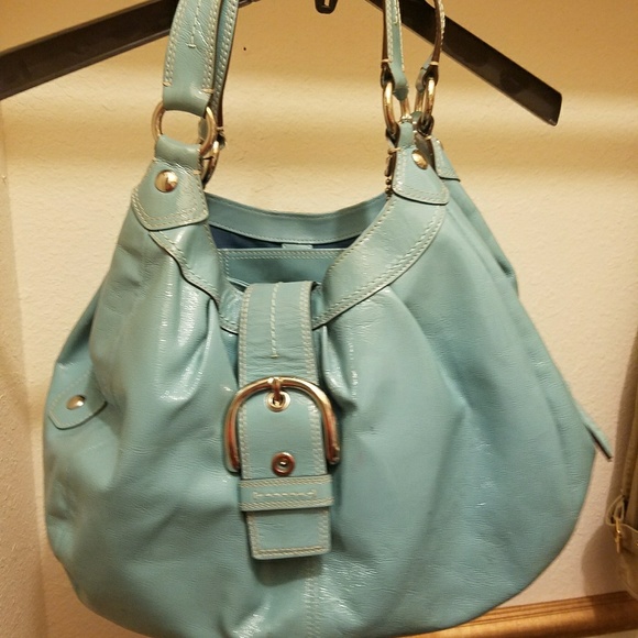 Aqua Coach purse. A few marks on the front. Still in good condition. No smells.