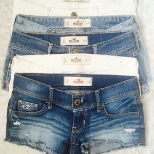 Five size 0 or 24 shorts. All hollister brand. All exellent used condition. Some say 00 but all fit like 0. 2 white distressed shorts, 1 light wash distressed shorts, 1 medium wash super short shorts, 1 medium wash distressed shorts.