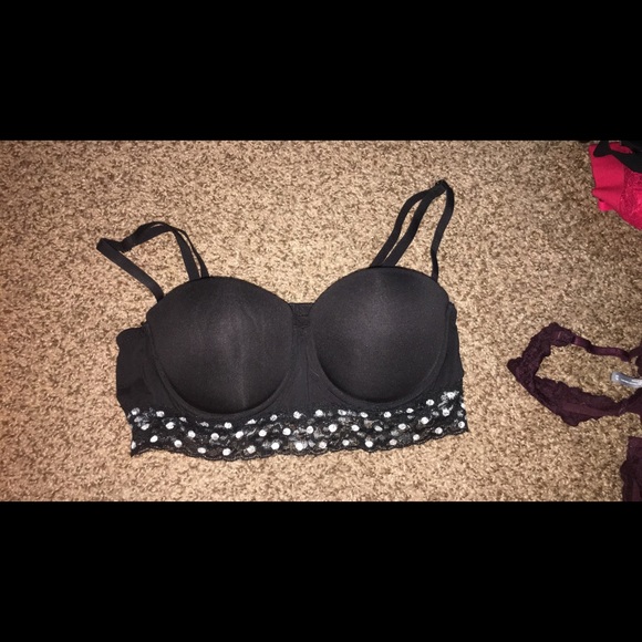 Black push-up bra with polkadot lace about an inch on the bottom