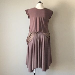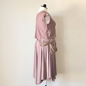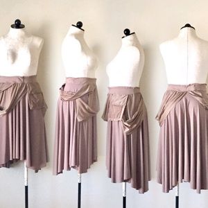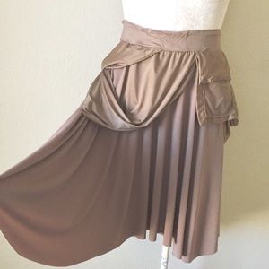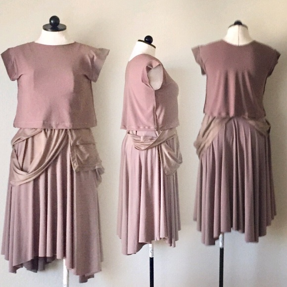 Stretch knit custom design skirt, with stretch knit cropped top. Measurements armpit to armpit 18in. Length 18in. Skirt has one functional pockets. Elastic waist. 34in -stretches to 45in