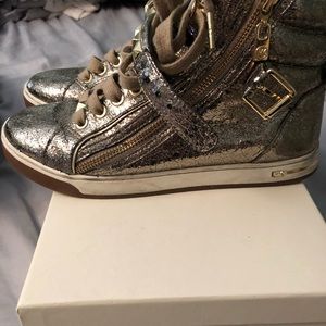Michael Kors fashion sneakers. Gently used. Gold. No smells. Size 7M. No box