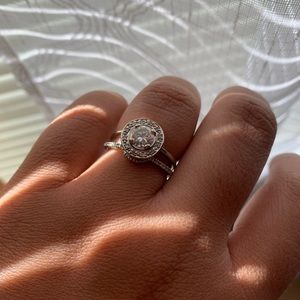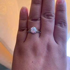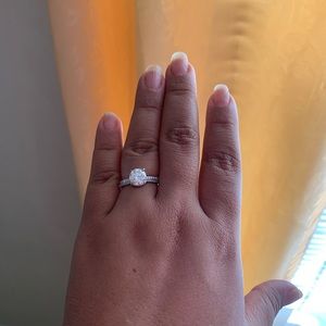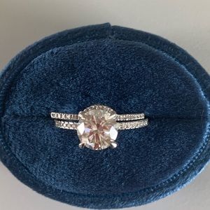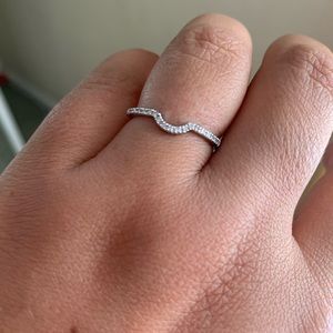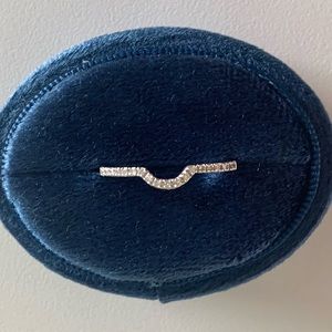 This beautiful ring guard (curved wedding band) is 0.11 ctw of mined white diamonds. It was purchased from Amazon. It was barely worn. No scratches, scuffs or abrasions. Size 8. Shown with a couple engagement rings for ideas only! *Listing for curved band only*