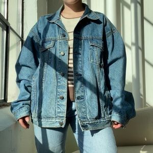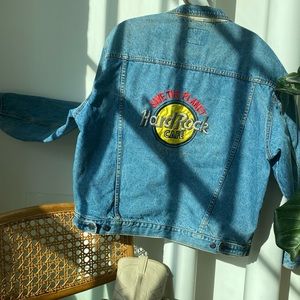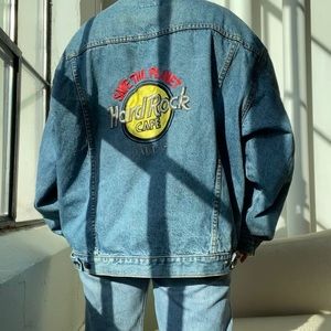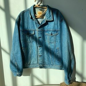 Vintage Dallas Save The Planet 80’s/90’s style chunky jean jacket. logo embroidery lining.