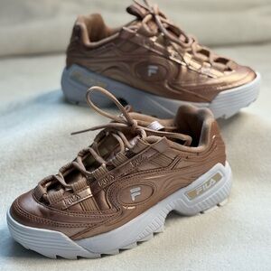 Women’s metallic rose gold Fila sneaker Size: 7.5 UEC