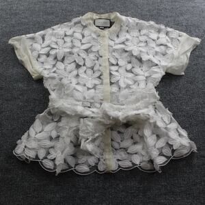 Beautiful sheer blouse with intricate white floral embroidery