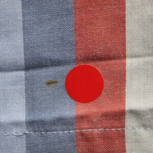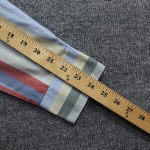 Color: Multicolor with vertical stripes in red, blue, green, gray, and cream