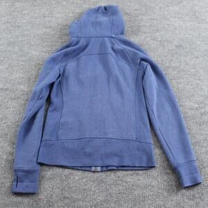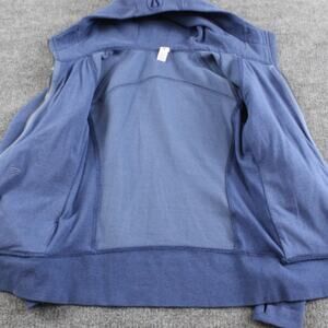 Front features full zip closure, Lululemon logo zipper pull and embroidered logo on hood