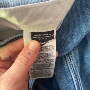 Medium wash, soft denim work overalls with carpenter pockets and a tool loop. Beautifully worn in with a couple of paint splatters but all hardware/zippers/buttons are in good condition.