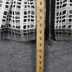 Features: Front zip closure with branded pull; peplum waist; snap-tab at waist