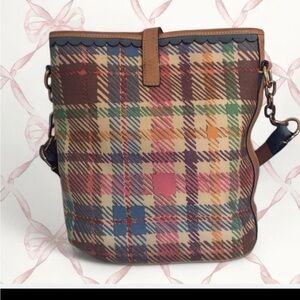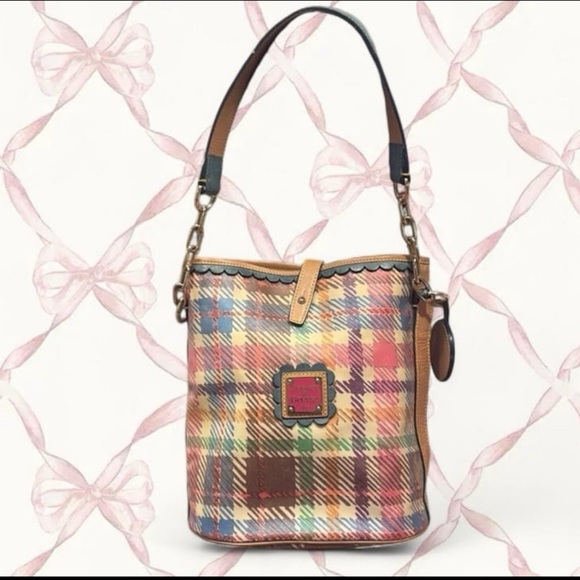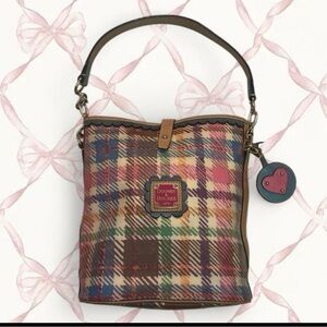Vintage y2k early 2000s tartan plaid Dooney&Bourke authentic bucket bag purse in excellent condition inside and out ! No bubbling or yellowing very hard to find. I love this bag it’s so preppy amd coquette Hamptons cute