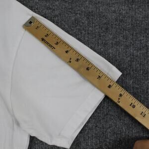 Pre-owned shirt with light general wash wear. Faint discoloration at the left underarm as shown in photos. Fabric and printed graphics are clean and intact with no other flaws; no original tags, shirt only.