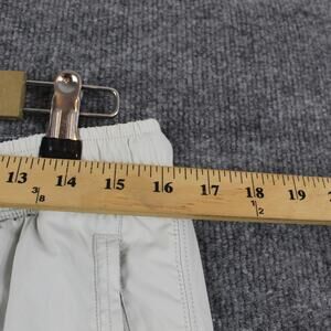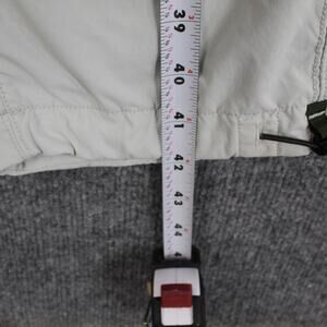 Style: Mens woven track pants in solid light gray with an athletic, outdoor-ready design.