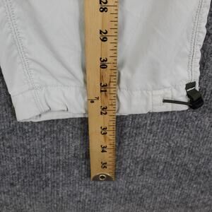 Details: Elastic waistband with built-in adjustable belt and buckle, two front zip hand pockets, single rear flap pocket with logo tab, articulated knees, lightweight stretch shell with breathable mesh lining, and adjustable hem cinch cords at the ankles.
