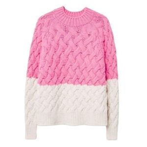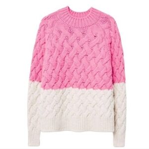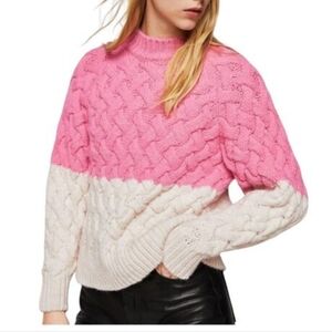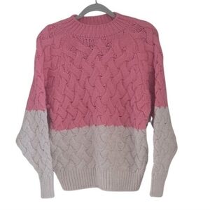 Mango Pink and White Thick Knitted Cable Stitch Color-block Sweater. Size XS.
