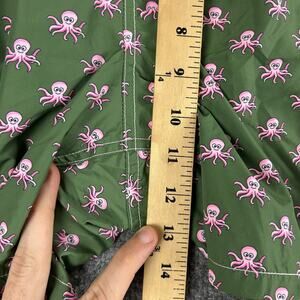 Color: Olive green base with allover pink cartoon octopus pattern and navy mesh lining.