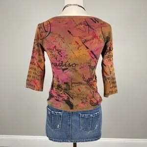 y2k glima zodiac / astrology patterned 3/4 sleeve top