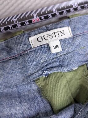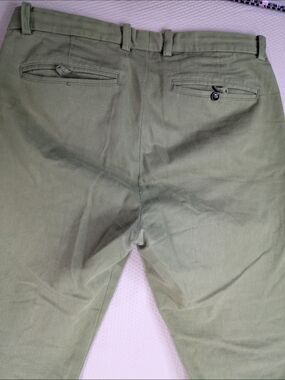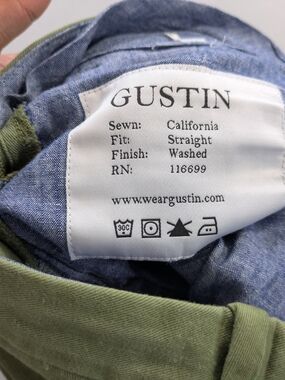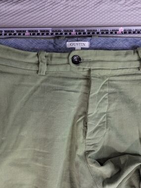 Classic olive chinos from Gustin. Clean front with belt loops. Side pockets and subtle pleats. Soft cotton fabric with a tailored cut. Easy to style for casual looks.