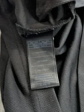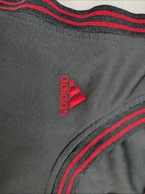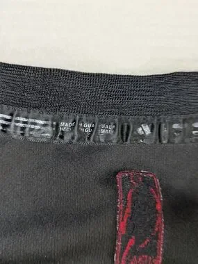 Sleek black adidas training top. Branded care tag visible. Lightweight performance fabric. Clean, minimal athletic styling.