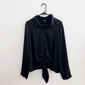 (sold) Express sateen button down tie front blouse XL office chic classic classy
