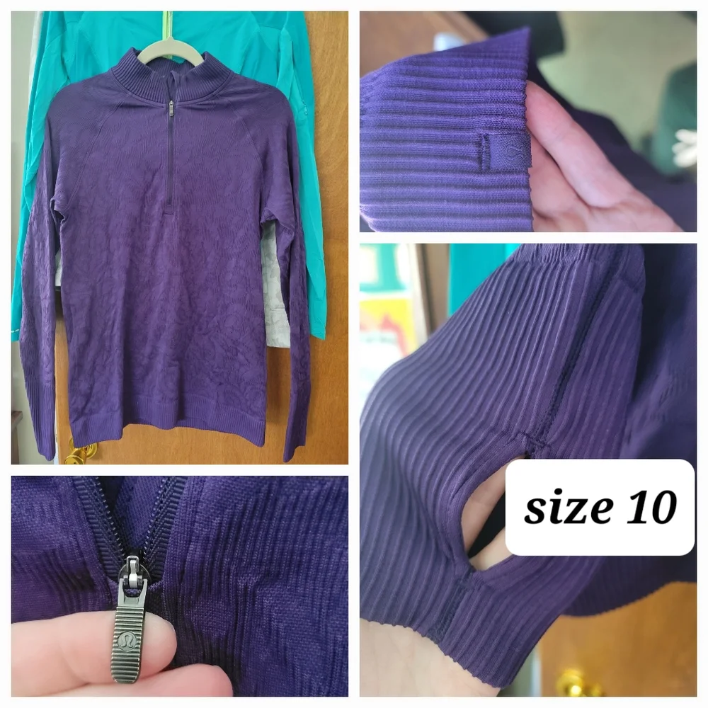 EUC 3/4 zip pullover. Size 10. no size dot. I've had for quite some time. forgot had in closet. Flower embossed. gorgeous shade of purple ๐