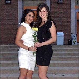 Perfect for a fancy evening date, this dress is classy with its subtle yet distinct sparkles and flowy shoulder accent. Not a stitch out of place, softly underlined, tight but not like a glove so it's extremely comfortable. It's my favorite dress, but no longer fits.