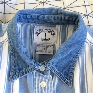 Vintage striped button down with a denim collar and cool button detail. Size Large from solutions