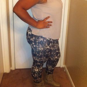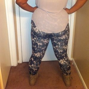 This stylish legging features a camouflage and tribal print on soft starchy body and a elastic waist band 95% cotton 5% spandex