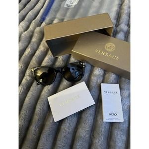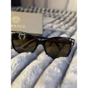 Versace MOD 4270 GB1/T5 Cat Eye Black Brown Stud Sunglasses 56-17-140