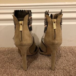 Brand new never worn klara 110 suede/Mirror leather nude metallic mix size 37. Open to reasonable offers. Will post new pic dog got to a few of the ankle pieces willing to negotiate. If serious please contact me for pricing