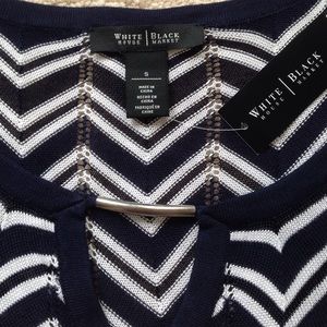 WHBM Navy blue and white chevron pattern knit tunic: size small, Key hole neckline with silver detail. NEVER WORN.