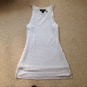 NWT White knit tunic from WHBM, size small. Lined with silver accent details around the neck. NEVER WORN!