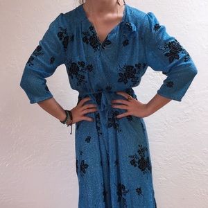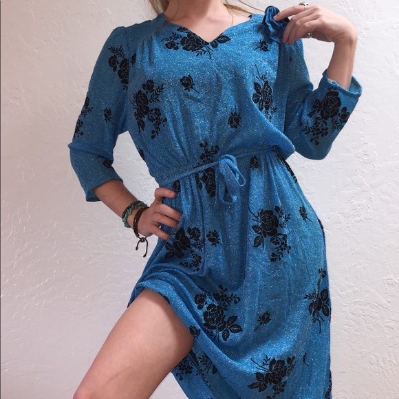 Oh my gawdddd this vintage baby blue glitter rose print dress is actually to die for.💙🥀 Truly such a rare, one of a kind find. You’ll be turning every head in this baby. Absolute perfect condition. Authentic 80’s vintage piece!!! No rips or stains. No size indicated but fits like a small/medium. Ties at the waist. So comfy and perfect for the warmer months coming up.