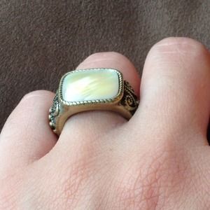 Beautiful Lia Sophia ring with white/pearl face and a design on the side. Very pretty, has an old classic look to it. New never worn. Willing to bundle with other jewelry.