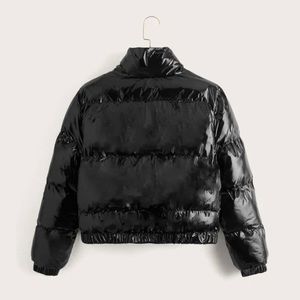 solid zip front padded coat