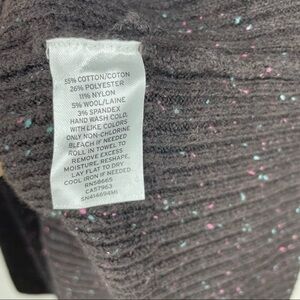 This sweater from Something Navy is super comfortable and the color is very unique- a chocolate brown that leans toward charcoal. The varied flecked colors in the sweater give it a fun vibe. Fits large and has a lot of stretch.