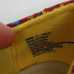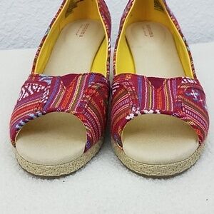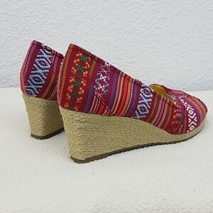 Colorful aztek canvas type shoes with natural wedge heel.