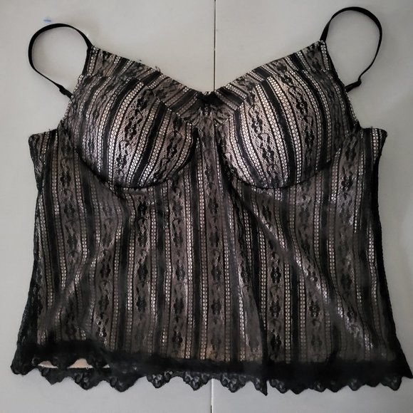 lined black lace top with spaghetti straps used size small not perfect but in good shape with lots of wear left. New York & Company intimates
