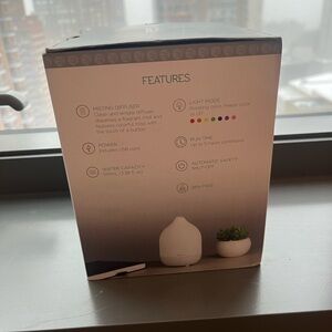 sparoom diffuser pixie gray. New in box. Essential oil diffuser. Run time is up to five hours continuous. Perfect if you own or run a spa, workout studio, esthetician business, etc. Directions are to remove cover, add water, add oil, replace cover and start. Price is negotiable.