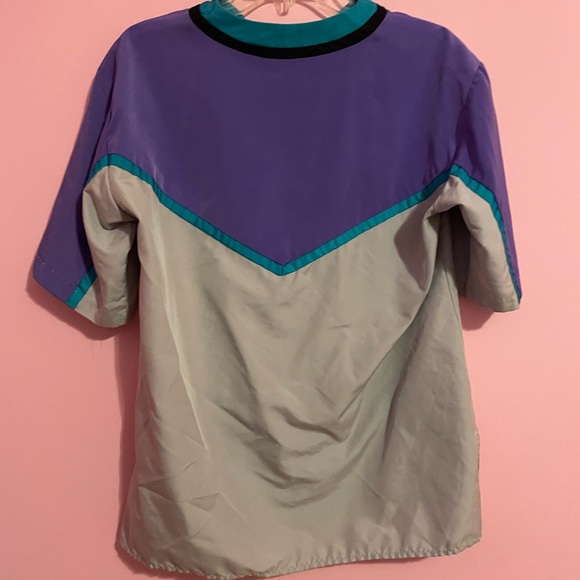 Futuristic space swag costume shirt spaceship earth short sleeve purple gris grey zipper