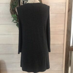 Excellent condition. Front flat under arm side to side 19.5”. Does stretch. Length 27”. Back 3” longer. Slits on sides at bottom. Little lighter than picture.