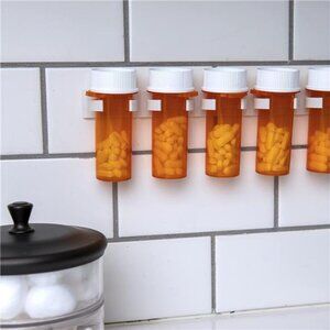 🧿Prescription Bottle Grippers - These are perfect to put prescription bottles at your fingertips. You are saving shelf space by placing them inside your cabinet door. There are 3 strips with 5 clips on each unit holds 15 Spice jars. All of your prescriptions right in front of you without having to move any bottles around.