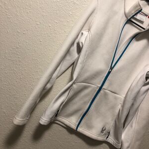 spyder jacket womens large core white knit full zip slim fitted blue trim bg1