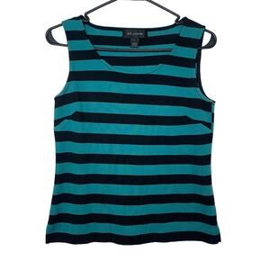 st John womens small p knit wool tank top sleeveless black blue stripe casual