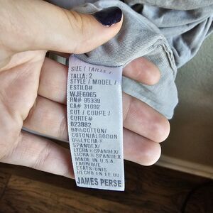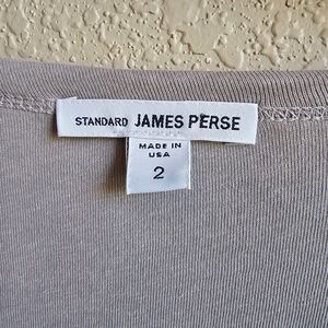 This James Perse dress in size 2 features a light gray color with a side ruched design, making it a stylish option for various occasions such as parties, casual wear, work, or business meetings. The dress has long sleeves, a V-neckline, and a pullover closure for easy wear. Made from stretchy fabric, this midi-length bodycon dress is comfortable and flattering, perfect for all seasons. Easy to care for with machine washable instructions, this dress is a versatile addition to any woman's wardrobe. Pre-owned