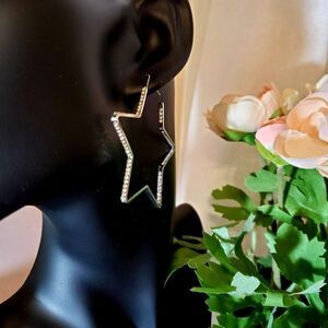 star Silvertone Hoop Earrings