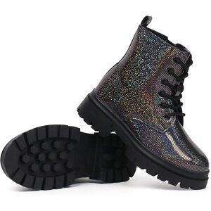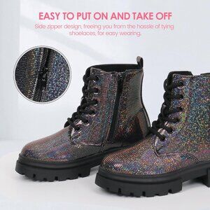starmerx Girls Ankle Boot grey Lace Up Side Zipper Comfortable shiny upper
