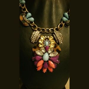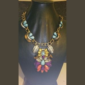 Beautiful statement necklace with vibrant colors coral and turquoise stone with cheatah print detail