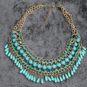 blue and gold statement necklace