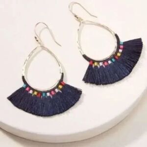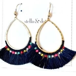 stella & dot ~ NWT modern bohemian fringe drop ~ navy multi