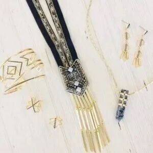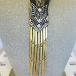 stella & dot ~ exotic black & gold handbeaded nile necklace